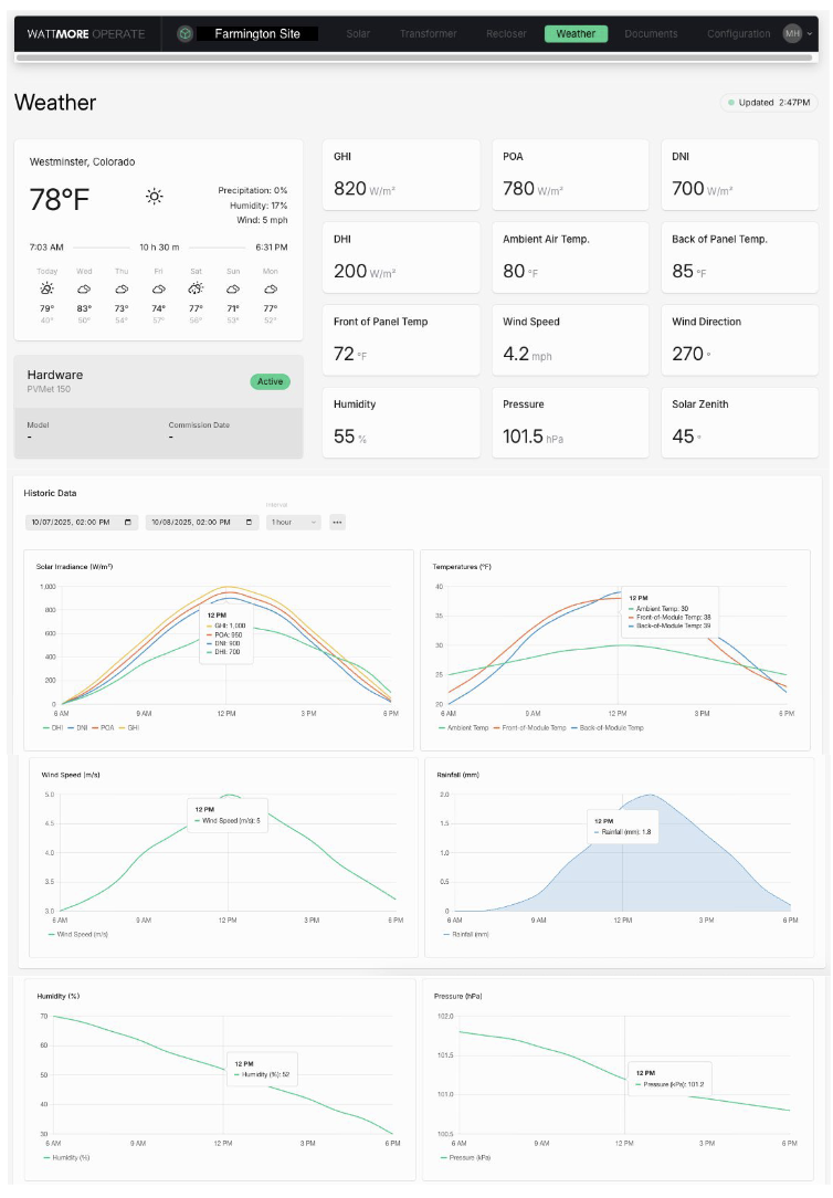 WATTMORE's Intellect EnFORM integrates seamlessly with all major weather station manufacturers and provides automated data validation, gap filling, and performance analytics. Contact us to learn more about our data acquisition capabilities.